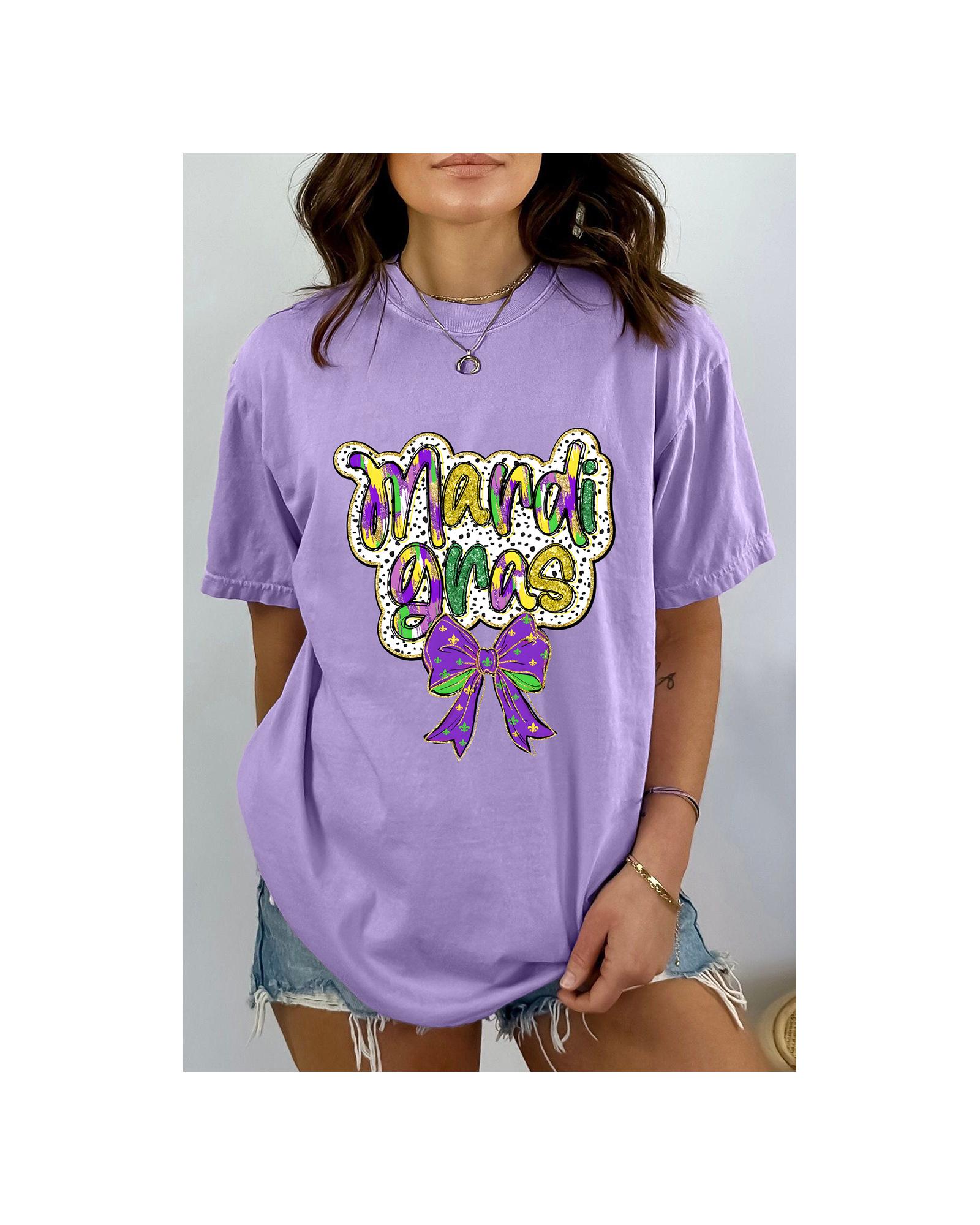 Wisteria mardi gras Bow Printed Crewneck Holiday T Shirt – M