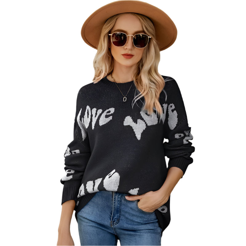 • 1 x Women Round Neck Knitted Sweater Letters Jacquard Pullover Sweater – Size L