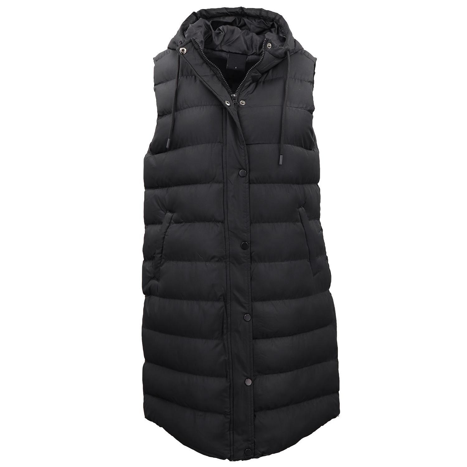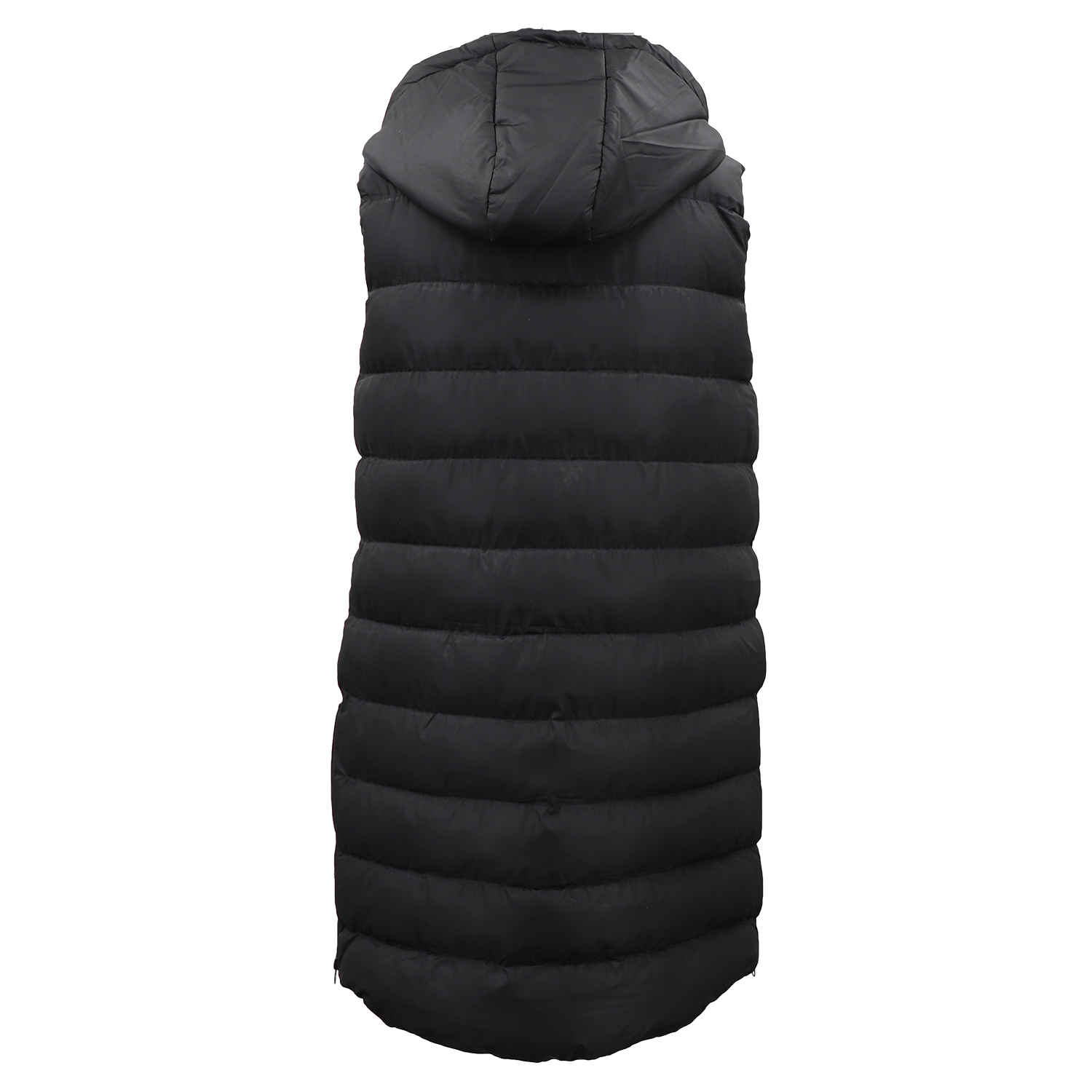 Women’s Longline Padded Vest Hooded Jacket Puffer Puffy Quilted Zip Coat Gilet, Black, 8