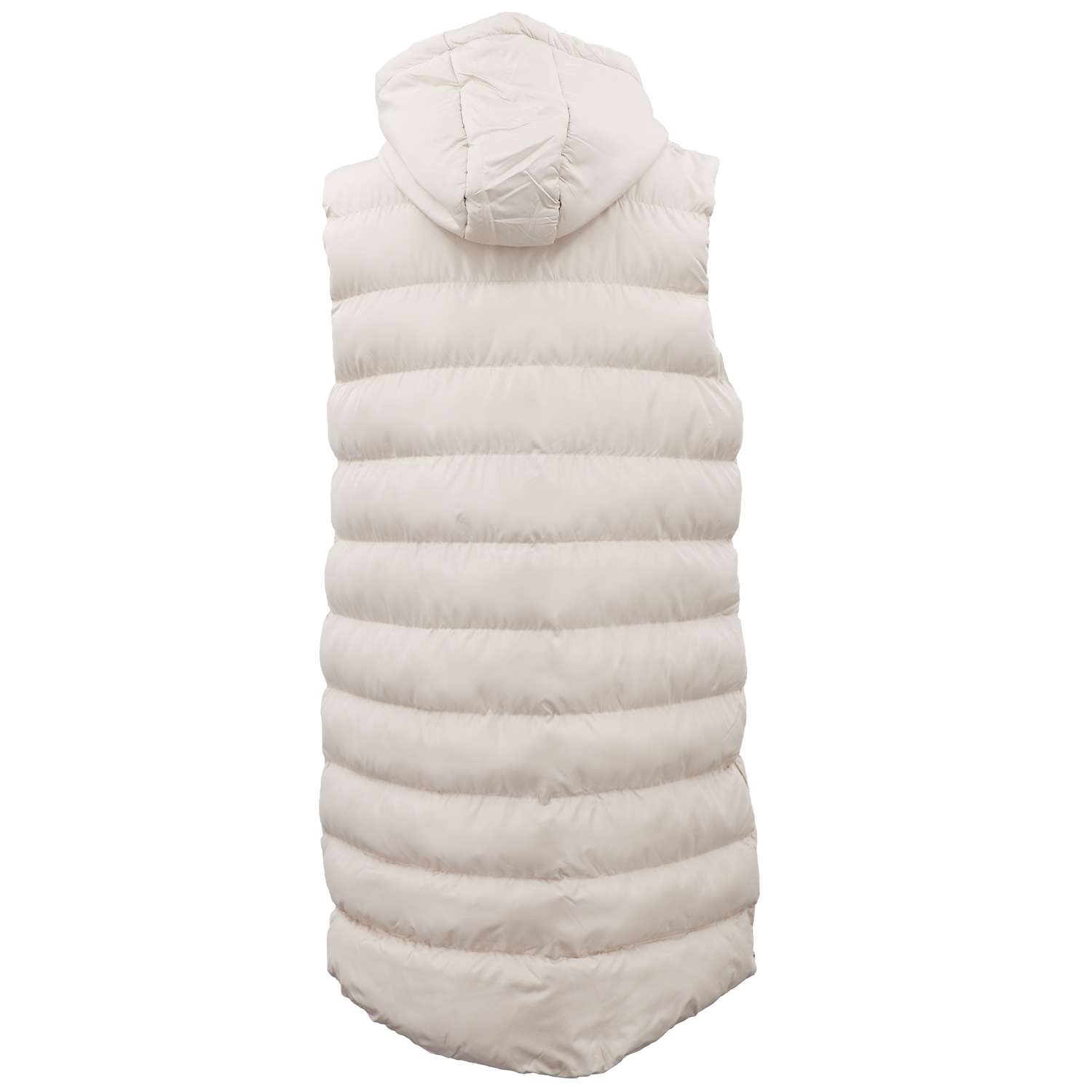 Women's Longline Padded Vest Hooded Jacket Puffer Puffy Quilted Zip Coat Gilet, Khaki, 10