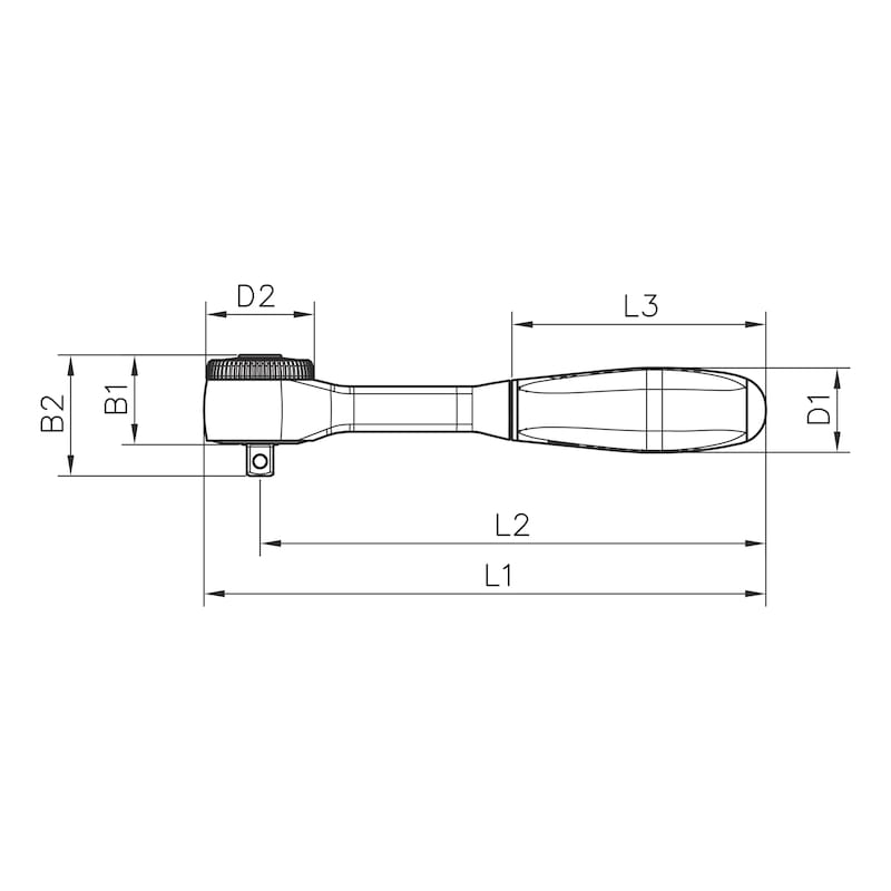 - Ratchet head: 27 mm diameter, 19.8 mm height (29.1 mm with square)