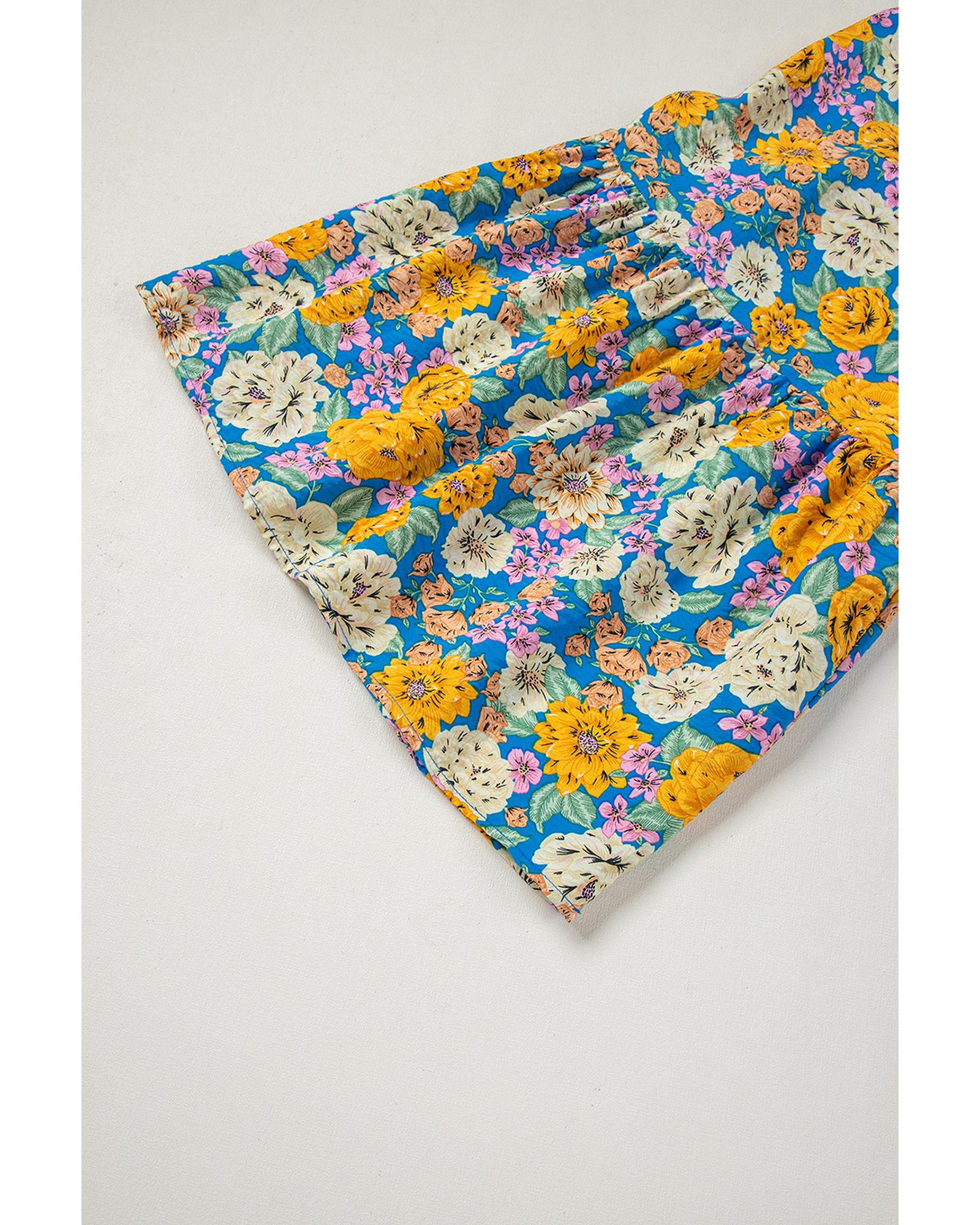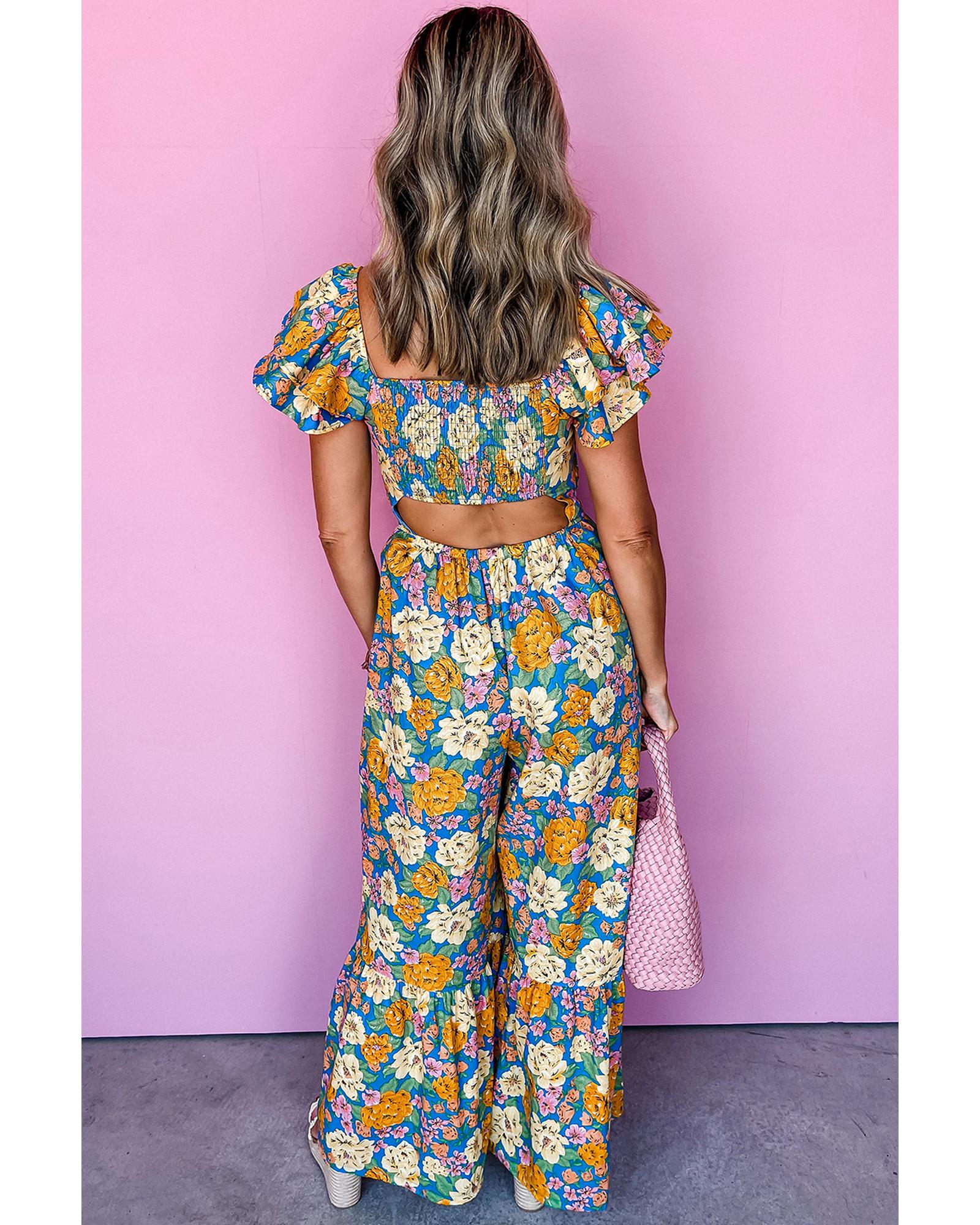 Yellow Floral Allover Print Shirred Cut Out High Waist Jumpsuit – M