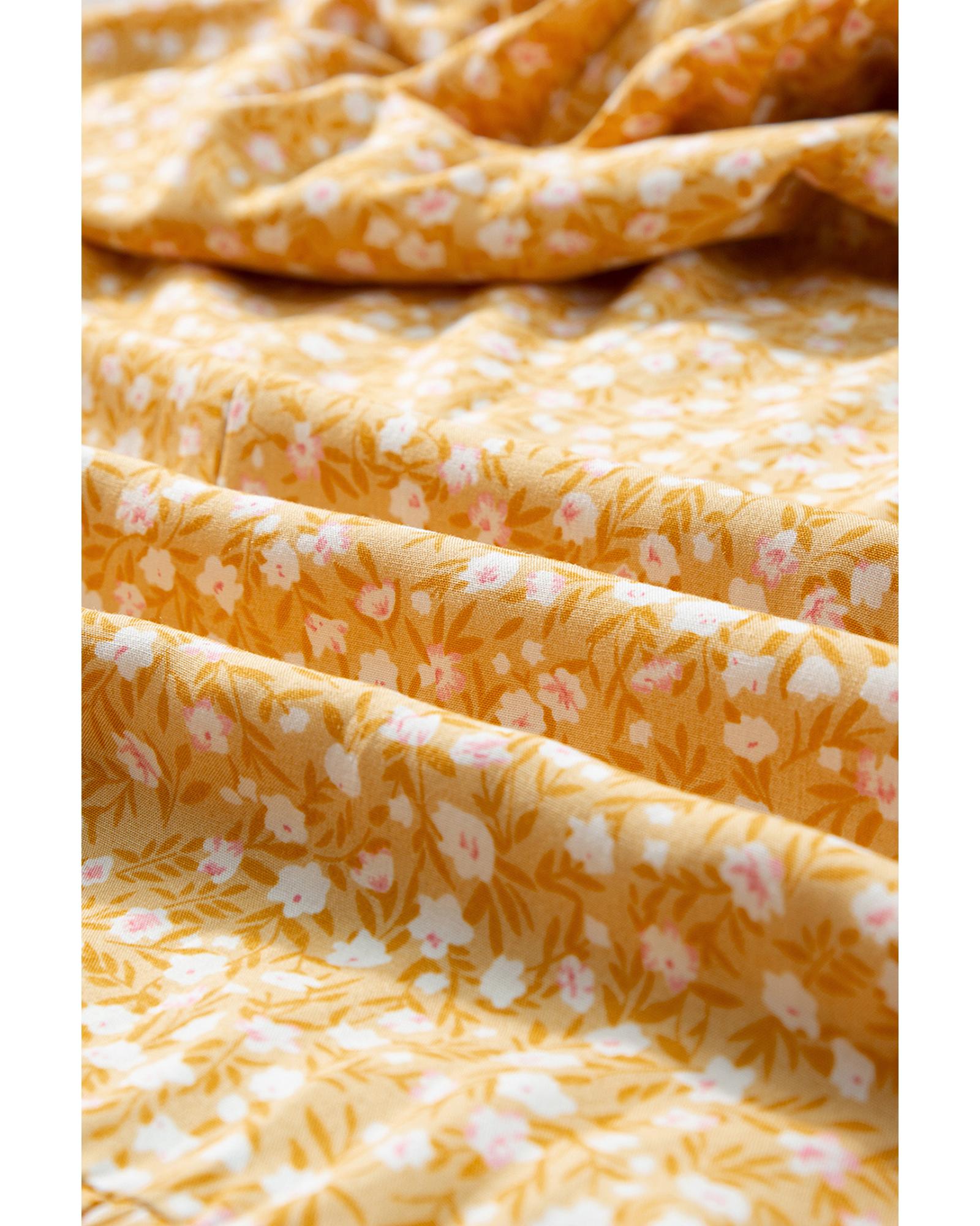 Yellow Frilly Smocked High Waist Floral Maxi Dress – L