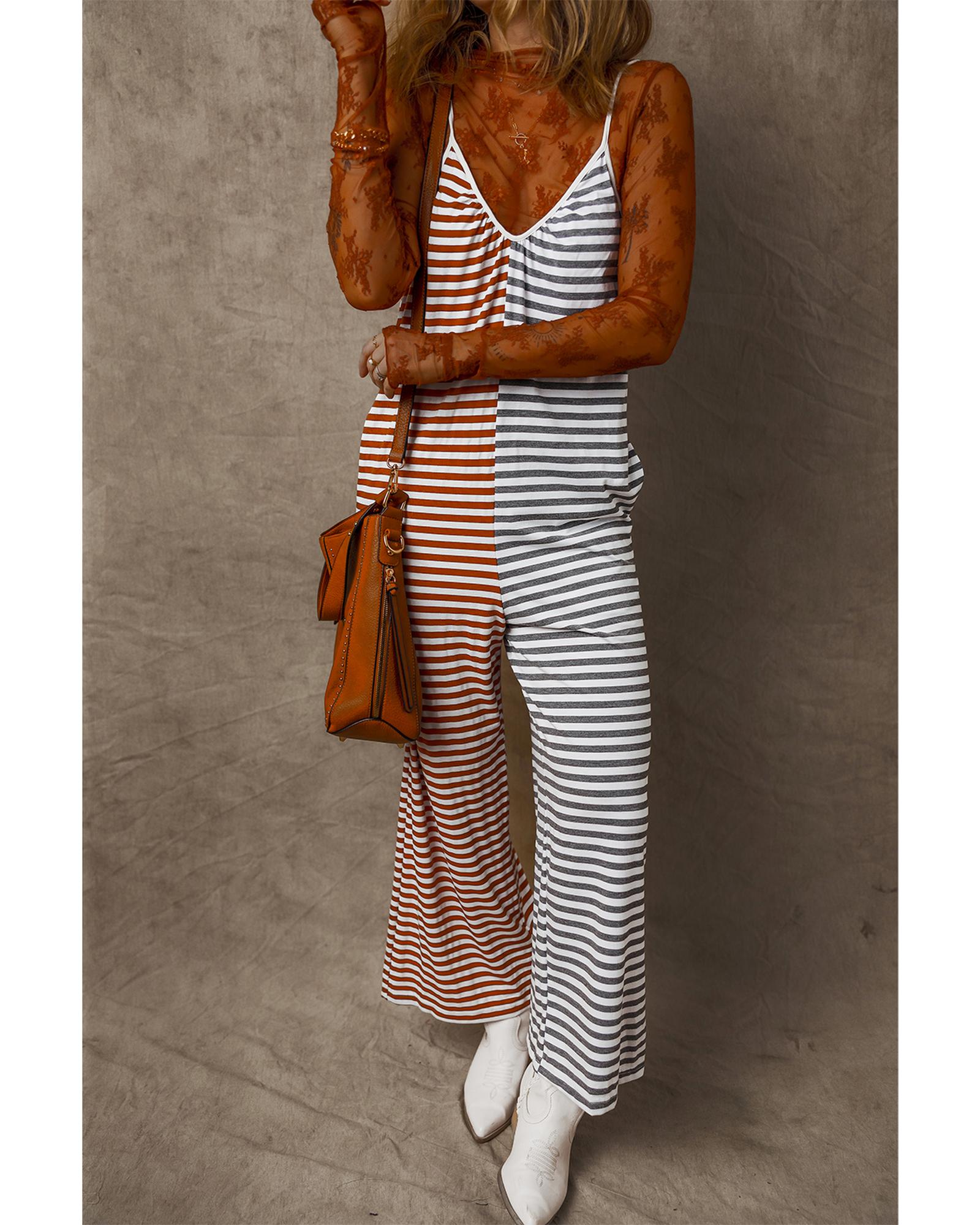 Yellow Stripe Two Tone Contrast Spaghetti Strap Backless Overall – S