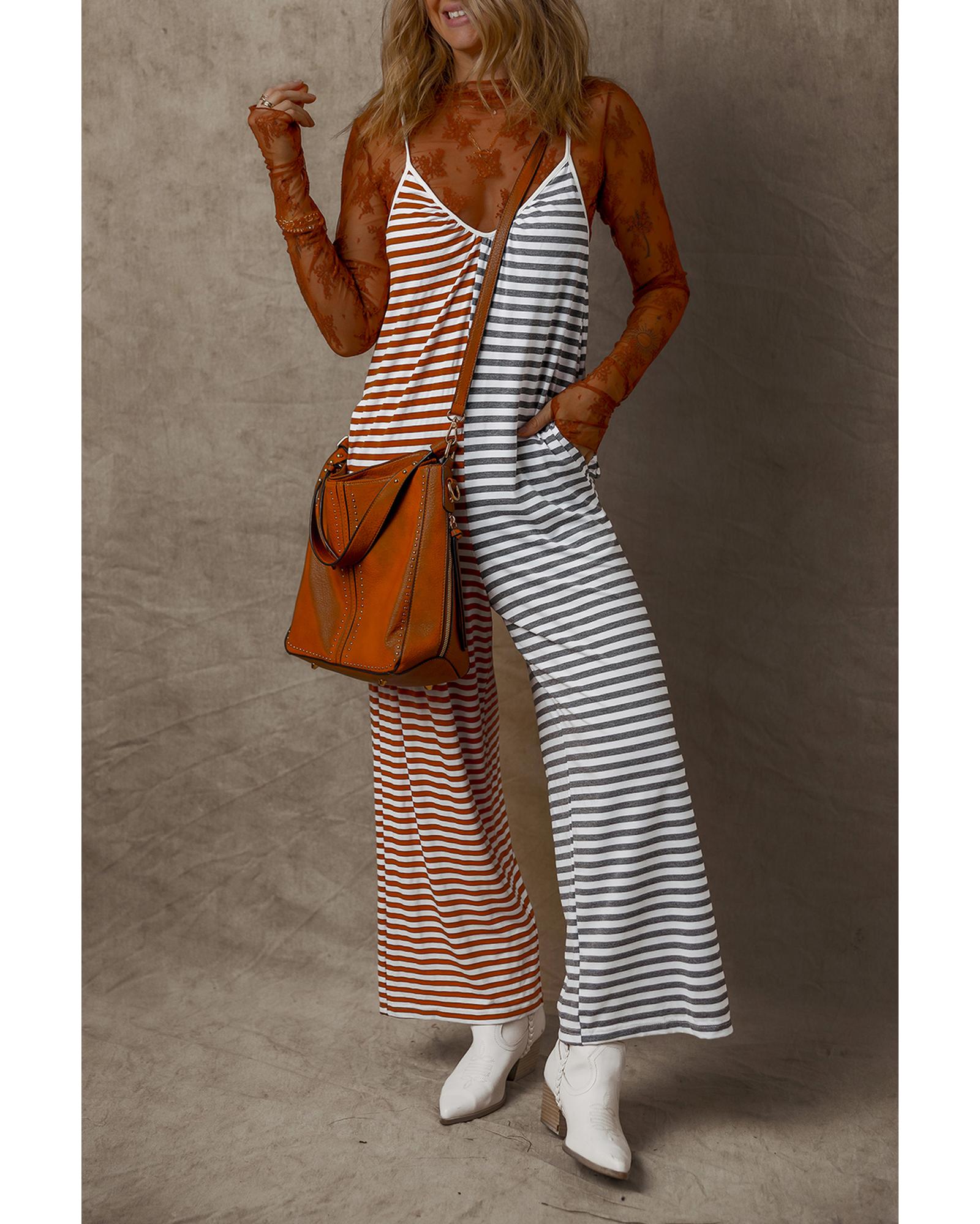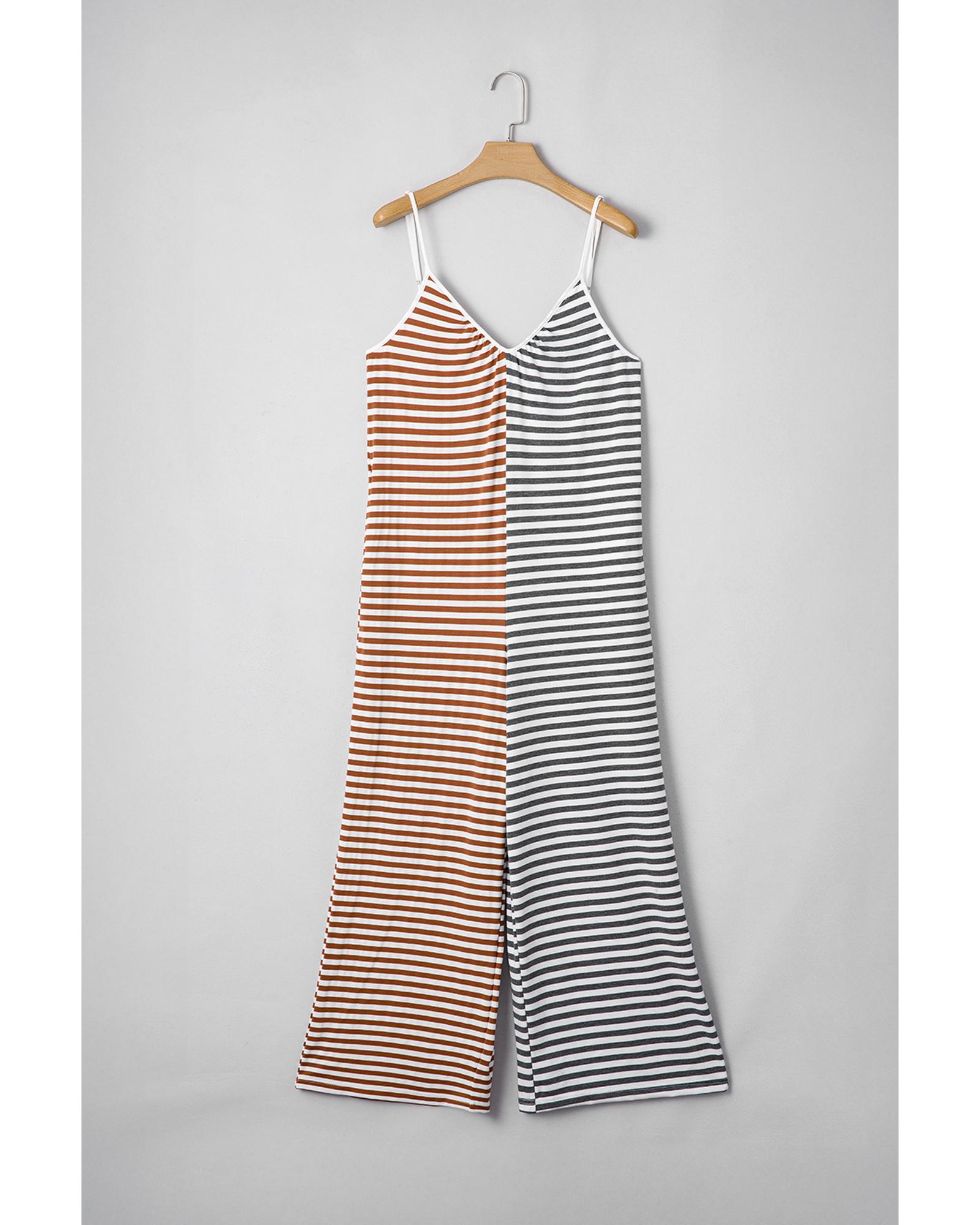 Yellow Stripe Two Tone Contrast Spaghetti Strap Backless Overall – XL