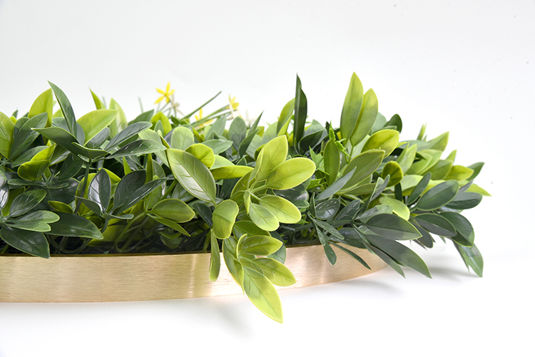 Please note:Your artificial green wall disc will arrive tightly packed in a box to ensure protection during shipping. However, this may result in the foliage appearing squished, which is normal and can be easily fixed. Simply adjust the branches towards the edges of the frame and bend them to cover any visible spaces.