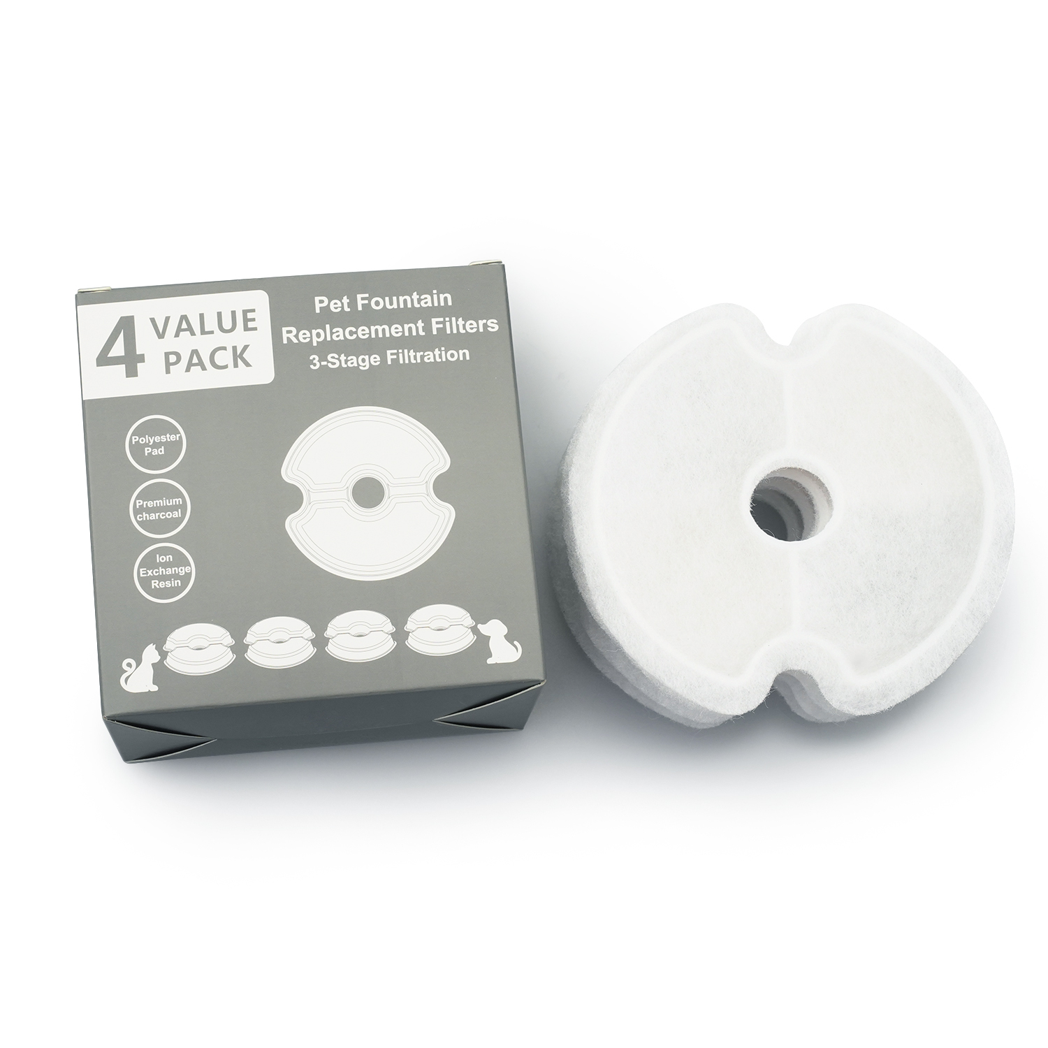 - [COMPOSITION MATERIAL]: Eachfountain filter is composed of acotton layer, activated carbon, and an ion-exchangeresin.