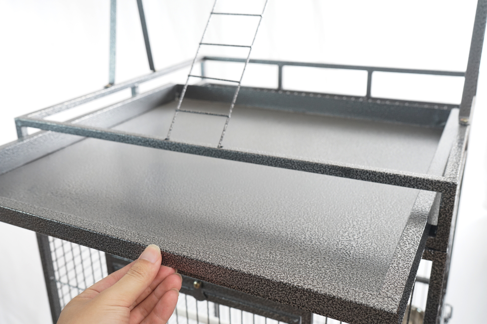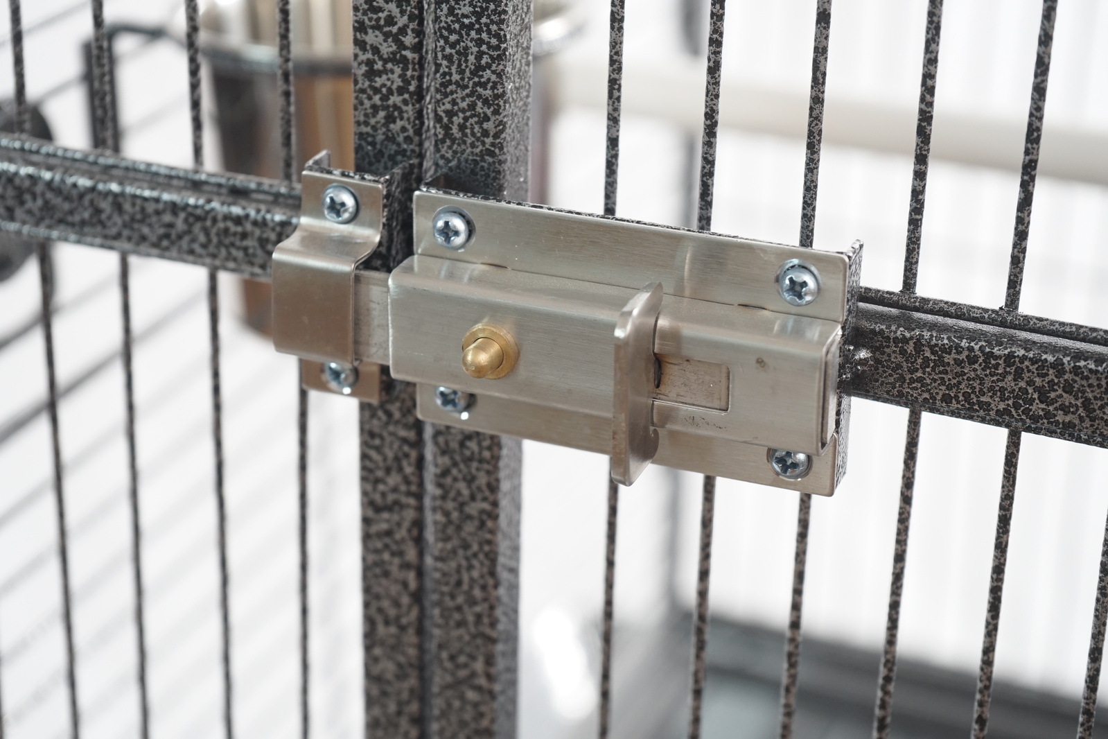 Our cage is made from goodquality wrought iron andthe durable metal cage uses a non-toxic powder-coated finish for total eco-friendliness to man and bird.