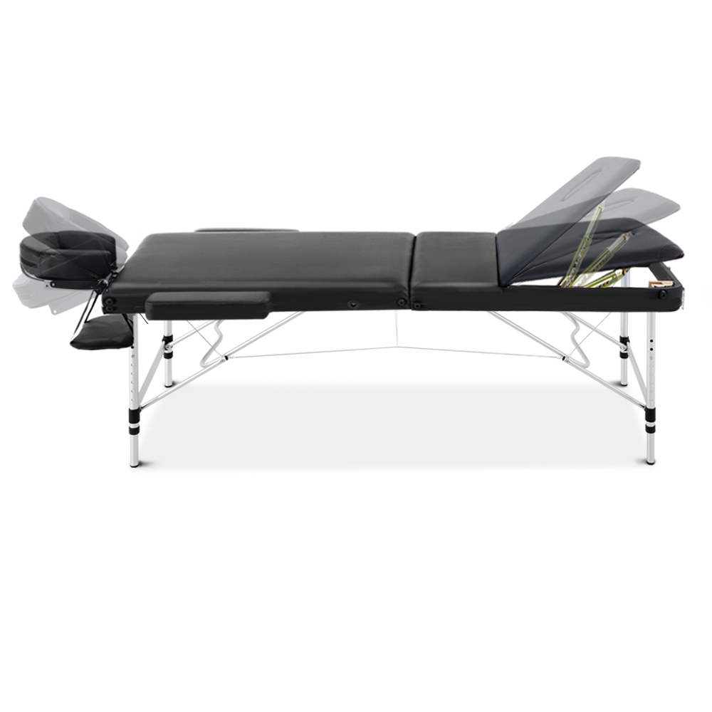 Portable Aluminium 3 Fold Massage Table Chair Bed Black 60cm