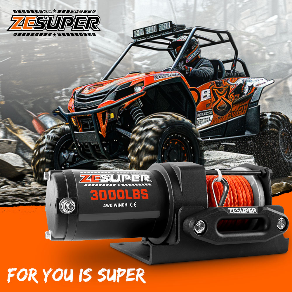 ZESUPER 12V Electric Winch 3000lbs Synthetic Rope Wireless Remote ATV UTV BOAT