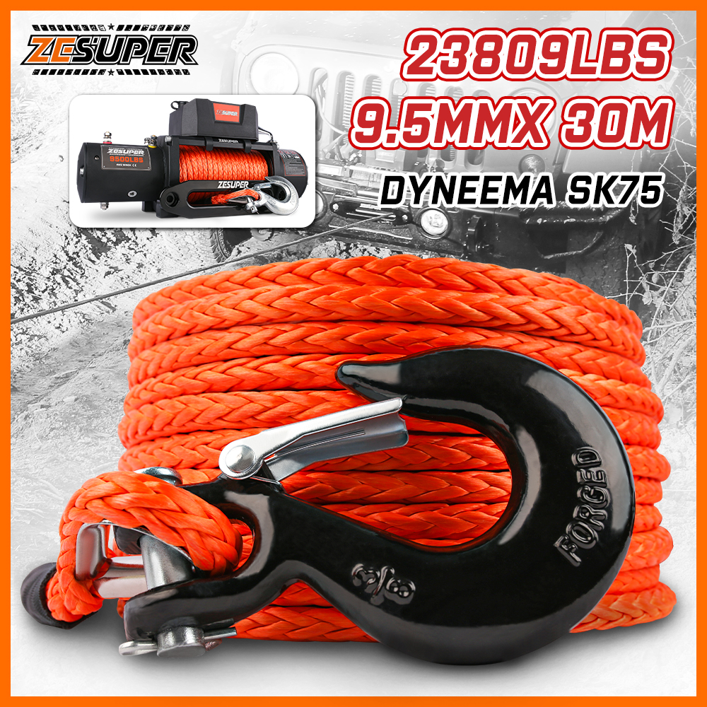 ZESUPER Winch Rope 9.5MM X 30M Dyneema SK75 Hook Synthetic Car Tow Recovery Cable Hook